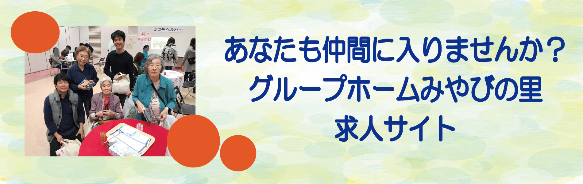 みやびの里では、お年寄りを大切にするやさしい心を持った仲間を募集しています。
